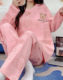 Pink cartoon‑bear printed night suit.